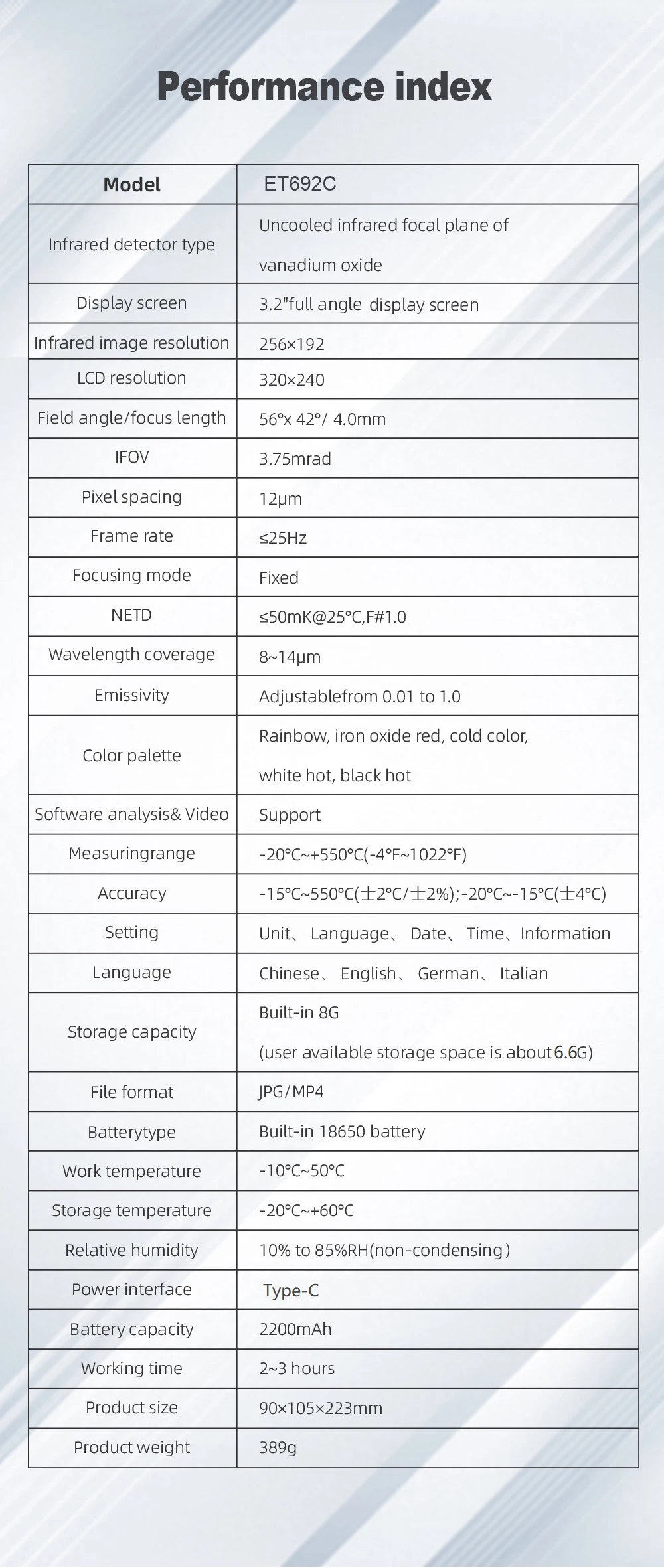 - 🎯 Précision absolue : Résolution 256x192 et capteur professionnel pour des mesures fiables de -20°C à +550°C.